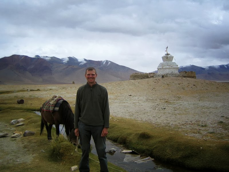 Am Fuß des Passes baue ich schon gegen 14 Uhr an einem klaren Bach der aus einem Seitental kommt mein Zelt auf. Bald erscheint ein einsamer Reiter. Er entpuppt sich als der Begleiter der Kanadier, der jetzt nach Hause zum Tsomoriri reitet. Wieder bietet er mir seine Dienste an, was ich aber ablehne. Mittlerweile habe ich mich gut an den Rucksack gewöhnt, und bin auch stolz darauf autark unterwegs zu sein!