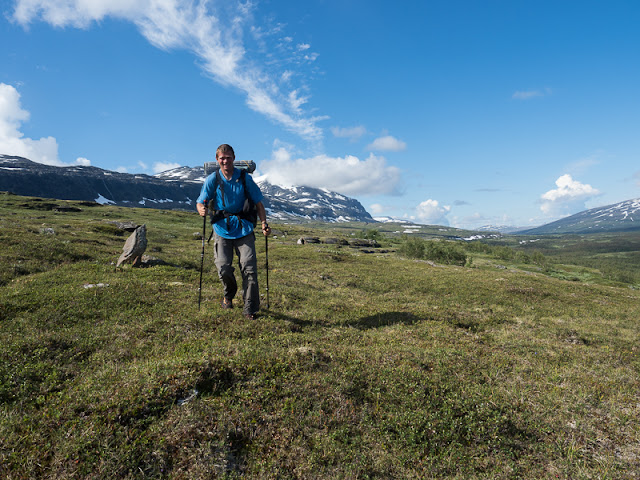 Next morning the beautiful weather continues. For a long time I walk again across the endless birch forests but finally I get above timberline where fine views over these vast open spaces open. I love this wide landscape!
