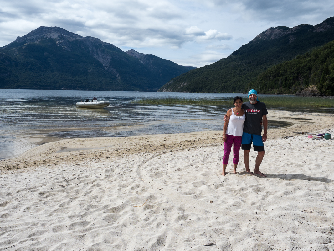 Alles geht gut, und ich erreiche den gegenüberliegenden Strand, wo das argentinische Paar Susanne und Daniel mit ihrem Motorboot angelegt hat. Die sympathischen Lehrer laden mich zum Essen ein und ich erfahre, dass vor einiger Zeit ungewöhnlich viel nassser Schnee gefallen war, der viele Schäden an den Bäumen angerichtet hat. Hier an der Playa Blanca ist der Weg noch nicht wieder frei gemacht worden.
